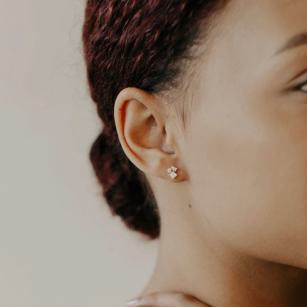 10k Solid Gold Cz Trio Cluster Studs