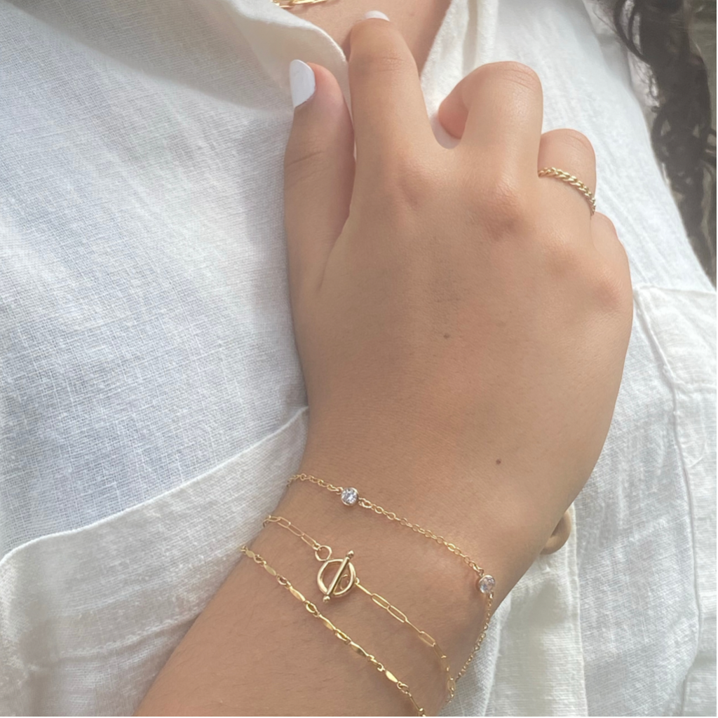 The Sylvia bracelet is a great layering piece to add to your stacking game, or let it shine and wear it solo!