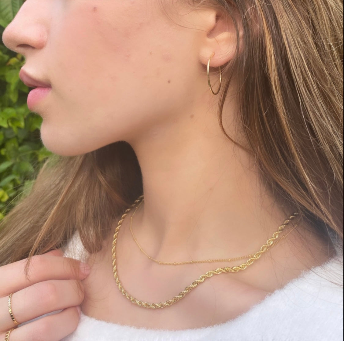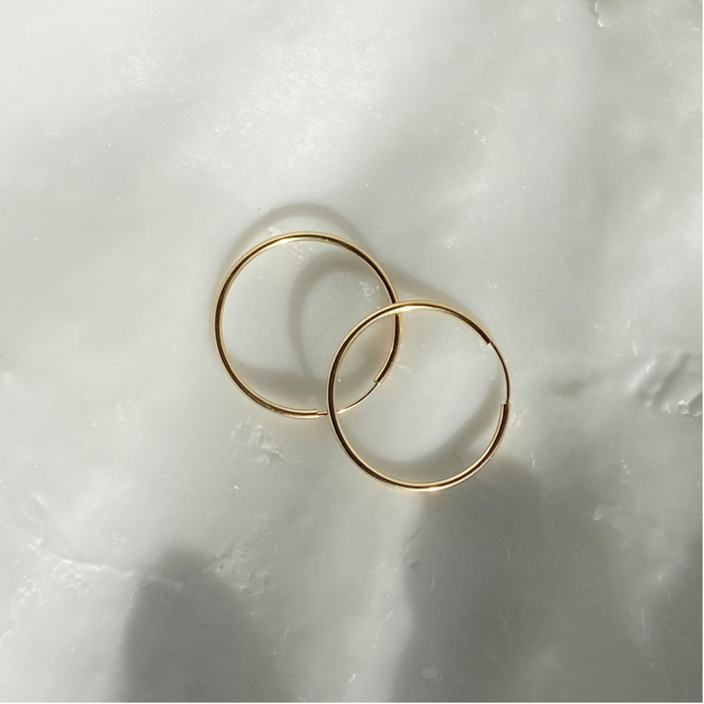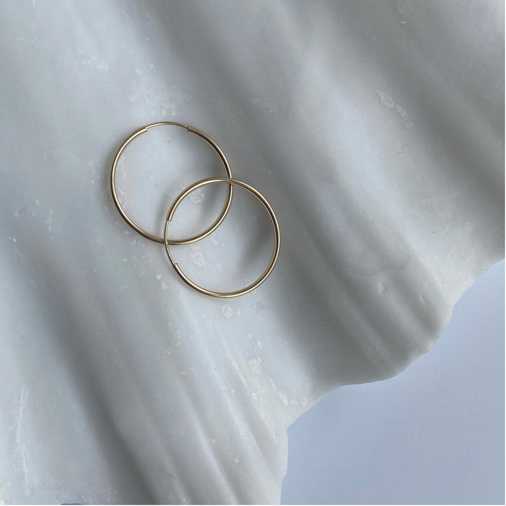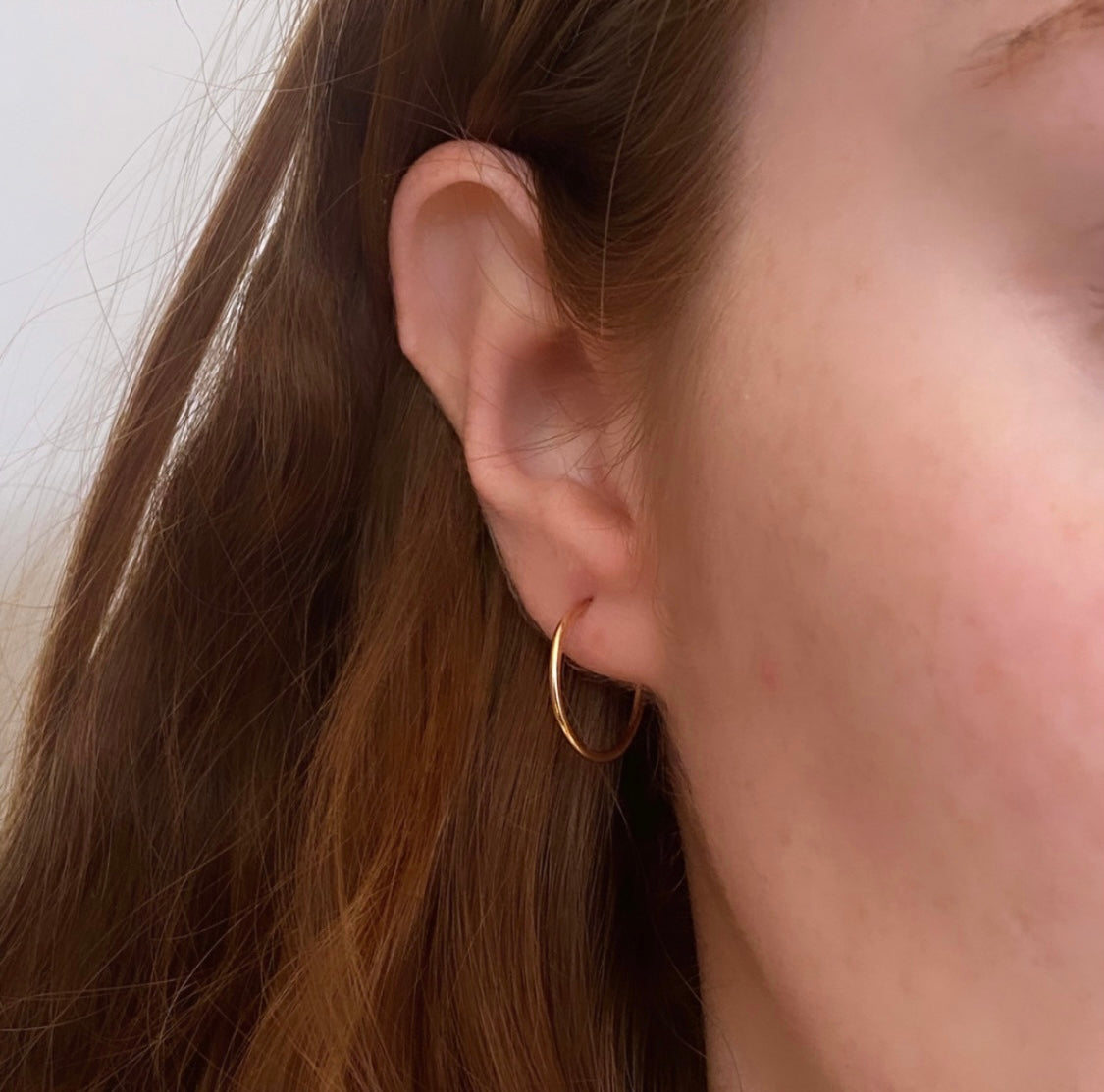 These hoops close into themselves, giving them and endless illusion. The hoops are super lightweight. Put them on and never take them off.