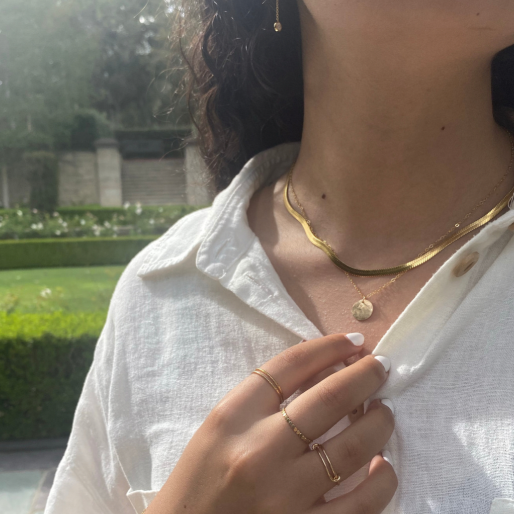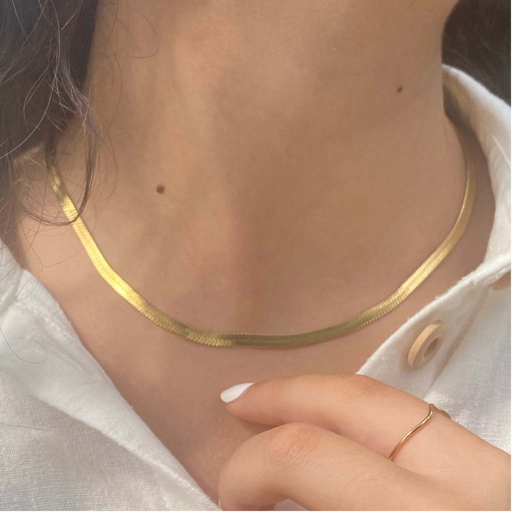 This necklace is classic and timeless piece. Elevate any look with this gorgeous herringbone necklace.